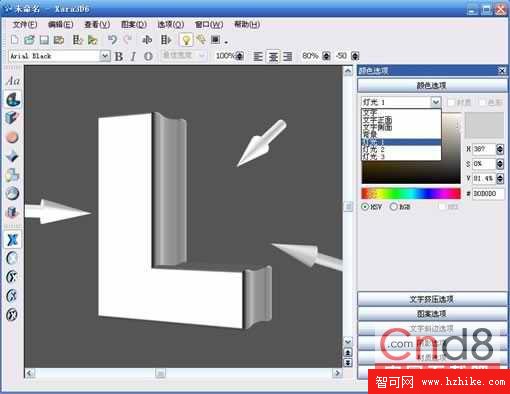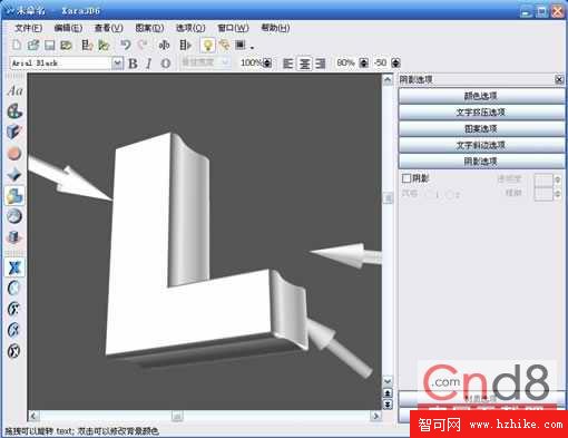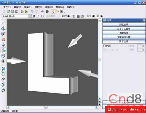 1.打開Xara3D軟件,選擇文字工具,輸入自己需要創作的文字,並設置字體。這裡我們輸入“L”,字體為Arial Black。