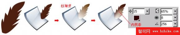 復制一個在上面,稍微偏移些,如圖拉漸變