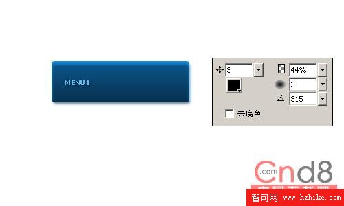 5、添加文字,選擇字體Verdana。9px大小並添加外部投影,得到如下效果;