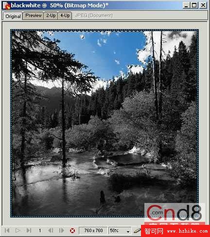 在Fireworks中打開一張黑白圖,然後用魔術棒工具做選區,
