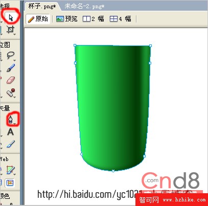 網絡上經常會用到系列圖標,今天和大家一起交流一下用Fireworks繪制水杯圖標的制作方法。效果如圖所示。