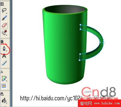 6、使用鋼筆工具來繪制杯把(這裡可以隨自己的愛好來繪制,請注意不同的造型,內側陰影的角度可能不同)