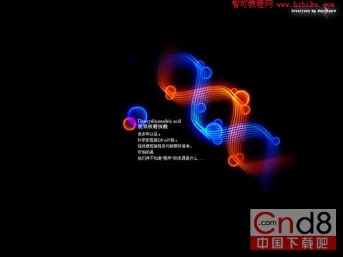 這次我用Fireworks繪制這個炫彩光影DNA圖案的桌面,主要應用到Firework的路徑、元件&補間的組合使用。希望能拋磚引玉,讓大家發掘firework的更多潛能!