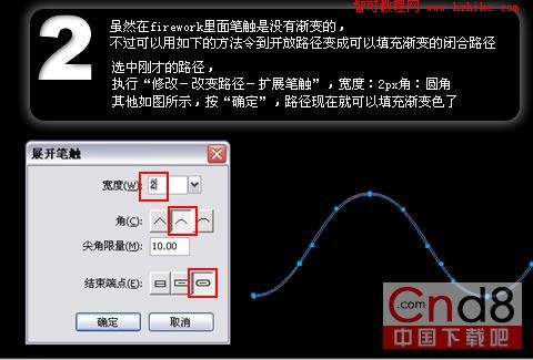 選中剛才的路徑,執行“修改-改變路徑-擴展筆觸”,寬度:2px角:圓角