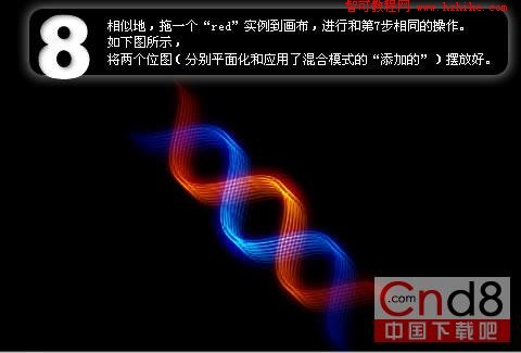 如下圖所示,將兩個位圖(分別平面化和應用了混合模式的“添加的”)擺放好。