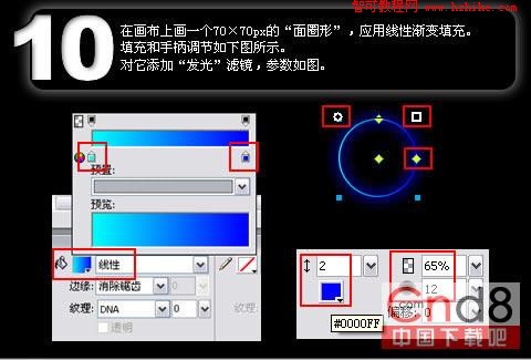 10. 在畫布上畫一個70×70px的“面圈形”,應用線性漸變填充。
