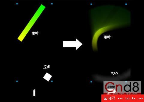 使用“部分選定工具”拖動控點,就可以控制模糊的方向了。
