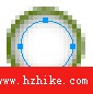 我們先來畫綠豆的臉,用“橢圓形”工具畫一個59*59大小的正圓,然後用“部分選擇”工具將該圓下端的節點選中後,用方向鍵向上移動7個像素。接著我們用“橢圓形”漸變對其進行填充,漸變值由#9FEC00至#81B31A,描邊色為#669506的2像素柔化描邊。如圖01.