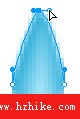 我們再來畫一個汗滴。先畫一個13*13大小的圓,采用“輪廓”漸變填充,色彩值為# BDEFFF至# 2EADD8,取消描邊色,並為其添加一個“進一步模糊”的特效。然後用“部分選擇”工具將該圓上端的節點選中,使用方向鍵向上移動12像素的距離。為使汗滴的上端更加尖銳,我們用“部分選擇”工具將上端節點的兩條控制手柄進行縮小,如圖22.然後調整填充手柄的角度,如圖23.從而使汗滴的反光更加自然。