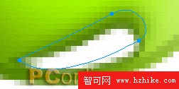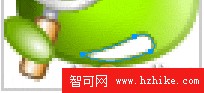 對該外形使用全白色的實習填充,描邊色為# 4B7702的1像素柔化。為了使嘴部也能呈現實心填充,羽化值為3,並取消掉原來的描邊色。然後將這個復制對象通過“層”面板的位置調整,移到綠豆“小嘴”對象的下方。然後用方向鍵將投影對象向上和向右分別平移3像素和1像素的距離。不過這樣還沒算完,再用“部分選擇”工具將這一投影對象左側的路徑節點選中,並將其向下移動3個像素,如圖15.