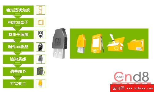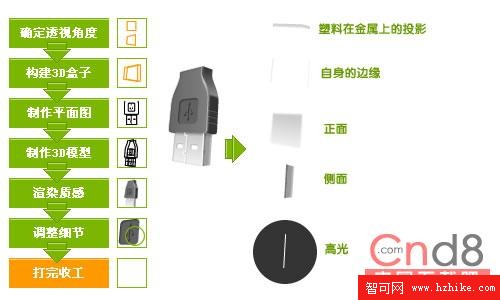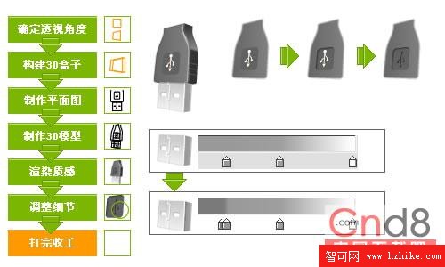 USB標志:使用1PX投影,表示它是凸出的,投影和陰影的目的是畫出那個很薄的側面.