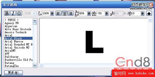 1.按Aa,打入自己需要創作的文字,並設置字體。這裡我輸入了L 字體為Arial Black;
