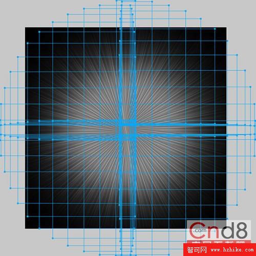 8、因為這朵蒲公英的形狀太圓了,要做成所需要的爆炸樣式還需要個別調整每個分支的位置。這是個需要點耐心,憑感覺的活。調整的宗旨是讓發散的光束有參差不齊的層次。總之沿著每個光束的方向向內或向外移動。注意光束的指向始終對准蒲公英的中心。