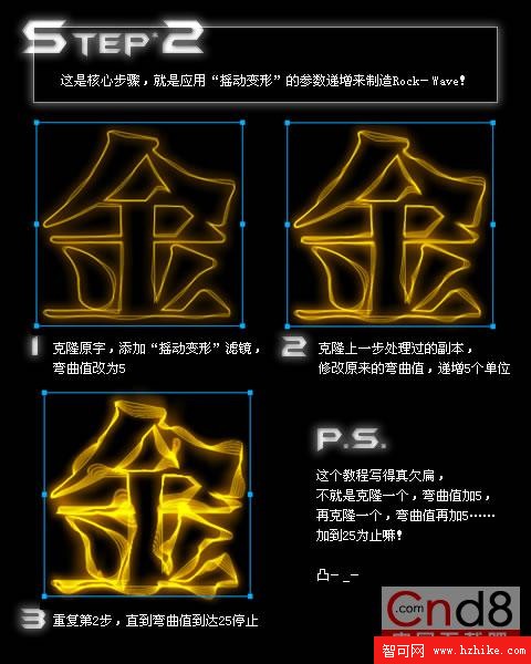 DIV+CSS佈局教程網 >> 網頁製作工具 >> Fireworks入門知識 >> Fireworks基礎 >> Firewoks教程:搖動變形打造搖滾波字