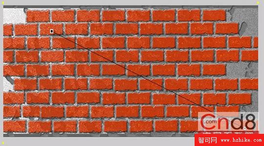 5.把磚頭排列成牆的形狀後我們在畫一個和牆壁一樣大小的矩形用線性漸變充填,效果為(新增雜點:數量30)選中組合過的磚頭點修改→蒙版→組合為蒙板。得到的效果如圖:
