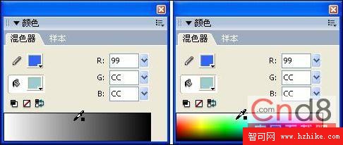 技巧14:按住【Ctrl】鍵,單擊【混色器】面板下方的顏色欄,可以快速切換到不同的顏色模式,如圖1所示。