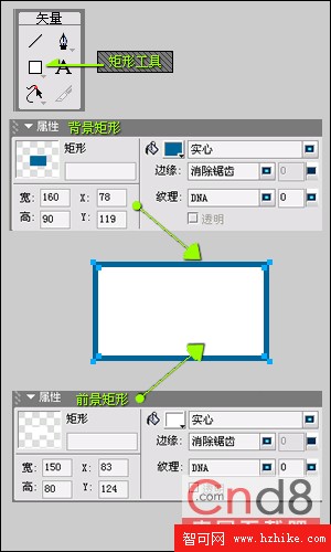 步驟三、用矩形工具拉出一個150*80px的矩形,填充為白色;作為前景。