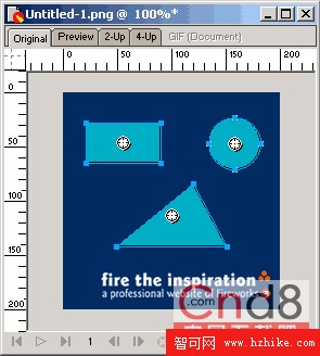 除了用來分割圖片,在Fireworks中翻轉圖、按鈕、導航條等帶有交互動作的對象都是基於切割的。