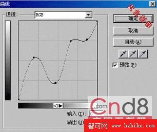 第四步: 選效果/調整顏色/曲線................參數設置如下:
