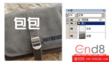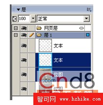 再按SHIFT+CTRL+D把文字和圖片各克隆一個,再選擇其中的文字和圖片各一層,執行修改 ->蒙版->組合為蒙版,如圖是選中文字和圖片各一個的圖層的效果: