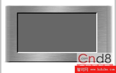 4.好了設置完以後現在我們就給他加上一個屏幕。用矩形工具畫一個350*173的矩形。相關設置:充填灰色。描邊顏色:黑色。。在選效果→斜角和浮雕→凹入浮雕 相關屬性為寬度:2對比度:75%柔化3角度150得到效果如圖4