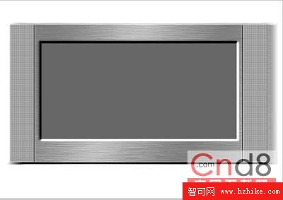 6.好了,設置完後我們就給電視添加喇叭。用矩形工具畫一個42*243的矩形。屬性為:(充填:灰色紋理:網格線4透明:100%)在選效果→顏色調整→亮度/對比度。把亮度調到30。對比度15。然後按住CTRL拖動左邊這個喇叭到右邊,或者CTRL+C (復制)CTRL+V (粘貼到右邊)設置完以後在用直線工具畫一條寬1高241。1象素的白線。選擇剛畫好的這條白線復制粘貼。把張貼的那條線選為黑色向右移動一格。選中兩條線組合(CTRL+G)復制粘貼到右邊。得到效果如圖6