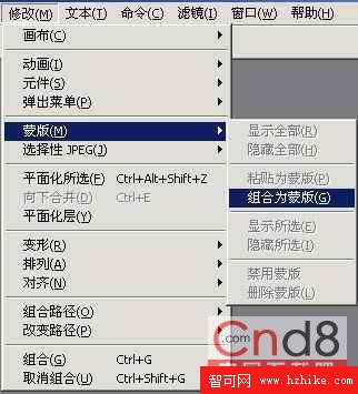 4.在層面板中,選中這兩個圖片,如果只有這兩個圖片,可以按CTRL+A全選。選擇菜單中的“蒙版”/“組合為蒙版”。