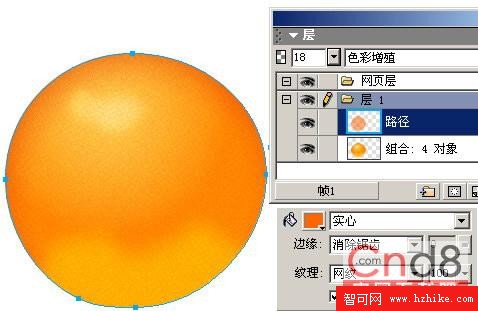 8、復制橙子外形圖層,填充色#FF6600,紋理選網格,制出橙子的表皮紋理,設為色彩增值,透明度18;