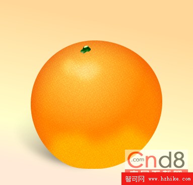 10、調柄的顏色、光澤,給橙子加陰影、背景,成形。