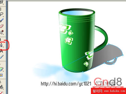 11、使用矢量的鋼筆工具來勾畫杯身上的裝飾線。