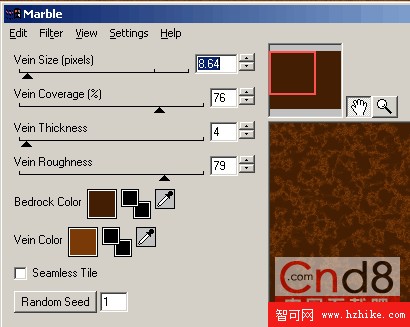 3.給矩形添加效果Eye candy 4000LE-->marble 設置如圖