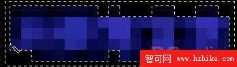 6、按“Ctrl+1”組合鍵,將編輯區視圖切換到“100%”視圖狀態。按“Ctrl+V”組合鍵,將剛剛“截屏”的圖片粘貼到編輯區,拖動粘貼的圖片,使得馬賽克區域能夠覆蓋住第2步操作中輸入的文本對象。為了便於後面的操作,選取工具箱的“選取框”工具,將粘貼圖片的馬賽克區域全部圈選中,然後按“Ctrl+Shift+I”組合鍵,將圈選區域反選,然後按鍵盤上的“Delete”鍵,將反選部分刪除掉,此刻編輯區效果請看下圖:
