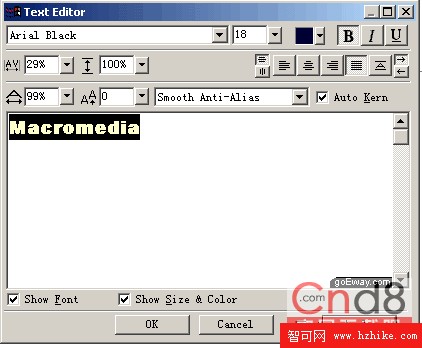 步驟三:將兩個文字對象分別環繞到上下半圓路徑上,使用Attach to Path命令或使用快捷鍵:Ctrl+Shift+Y。注意:此時Fireworks3這幾個文字是反轉的。
