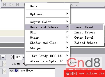 使用矩形工具繪制一個矩形,設置其填充色為綠色,寬為120,高為120,在Rectangle Roundness後的文本框內輸入數字30,點擊Effect後的加號按鈕,在彈出菜單中選擇Bevel and Emboss-Insert Emboss(如圖12),