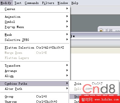 按住鍵盤上Shift鍵分別點擊這兩個矩形(即同時選中它們),使用菜單命令Modify-Combine Paths-Union將這兩個矩形拼合為一個矩形(如圖9),