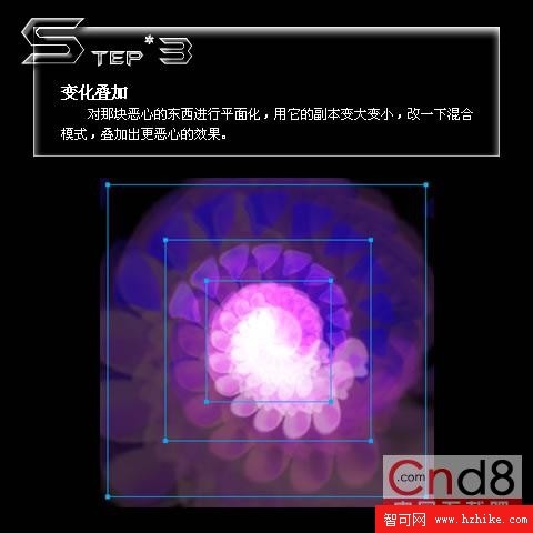 對那塊惡心的東西進行平面化,用它的副本變大變小,改一下混合模式,疊加出更惡心的效果。
