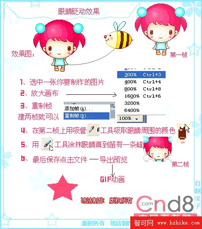 用Fireworks能非常輕松地制作眨眼睛動畫,大家一看下面的圖解就能很快明白和上手。