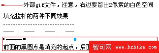 二是,同上畫一個矩形,然後在“填充-圖案-其他”中選擇自己畫好的線段,通常也是1像素高的gif文件,按你需要的虛線形式,用畫筆或是線段工具畫一個幾個像素寬的虛線。