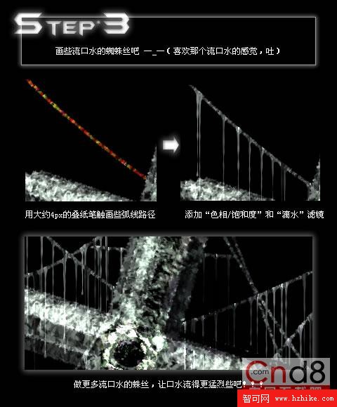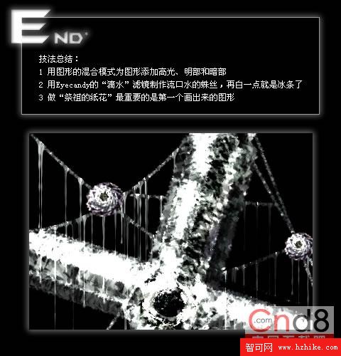 用圖形的混合模式為圖形添加高光、明部和暗部用Eyecandy的“滴水”濾鏡制作流口水的蛛絲,再白一點就是冰條了 3 做“祭祖的紙花”最重要的是第一個畫出來的圖形