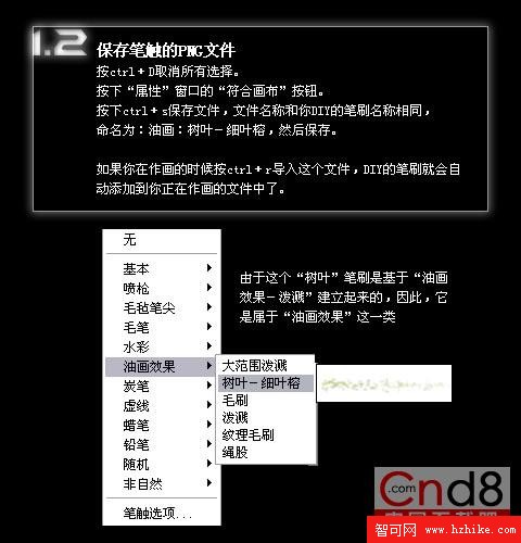 按下“添加筆觸”按鈕,添加你DIY的筆觸,命名為“油畫效果:樹葉-細葉榕”。(一個好的命名將方便你以後的調用)