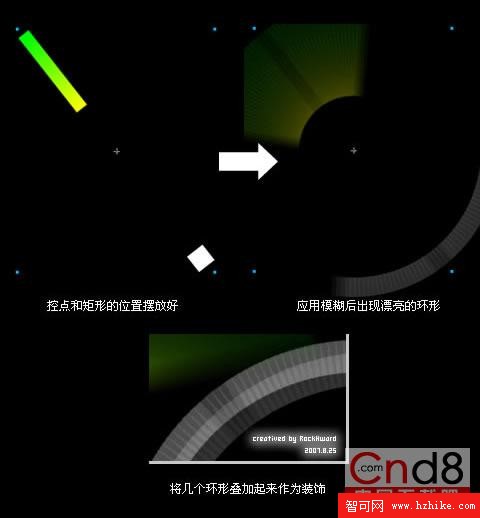 其實控點也不一定要它消失,使用控點的放射狀模糊模擬一些環形的裝飾效果(令我想起金莎朱古力。。。)。不過你需要將幾個控點的模糊疊加在一起才顯現出效果。