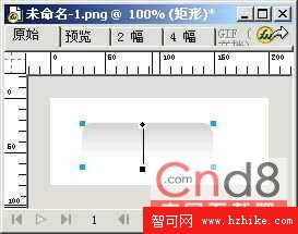 2.選中這個圓角矩形,在屬性面板上,描邊設為無,填充方式為線性,填充顏色設置為灰色到白色。選取油漆桶工具,從上向下拖動。
