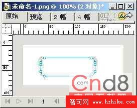 6.使用“刀子工具”,在圓角矩形的上部四分之一處,橫向切割。