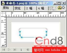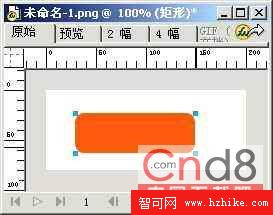 1.新建一個文件,背景色自定。使用圓角矩形工具,在編輯區繪制一個圓角矩形,矩形寬120象素,高40象素,矩形圓度為50。