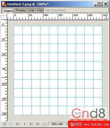 首先我們先在Fireworks中用File>New菜單命令新建一個300*300象素大小的文件,畫布顏色為白色。