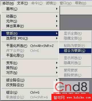 4.同時選中文字和圖片,使用菜單命令中的“修改”/“蒙版”/“組合為蒙版”命令。