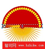 七、下面的圖片就是執行上面步驟後的結果,可是感覺這不是個扇形,而是象一個怪怪的圓形。呵呵,別急,還需進行一些設置。