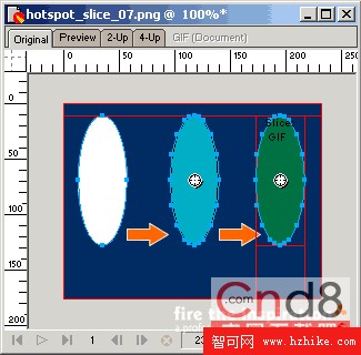 除了用來分割圖片,在Fireworks中翻轉圖、按鈕、導航條等帶有交互動作的對象都是基於切割的。