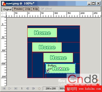 剛才我們創建了一個按鈕,接下來我們就可以利用這個按鈕方便的創建導航條了。在Fireworks中你可以利用同一個按鈕反復衍生出一系列類似的按鈕來組成導航條,而無需重復創建多個類似的按鈕,大大減少了工作量,這就是Fireworks神奇的地方!!!現在我們就去看看是怎麼做的吧。