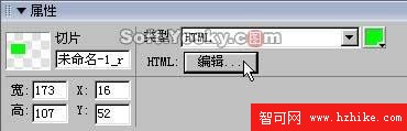 答:選中切片對象後在其屬性框的類型列表中選擇“HTML”,然後點擊“編輯”按鈕,即可在“編輯HTML切片”窗口中輸入Html代碼了。